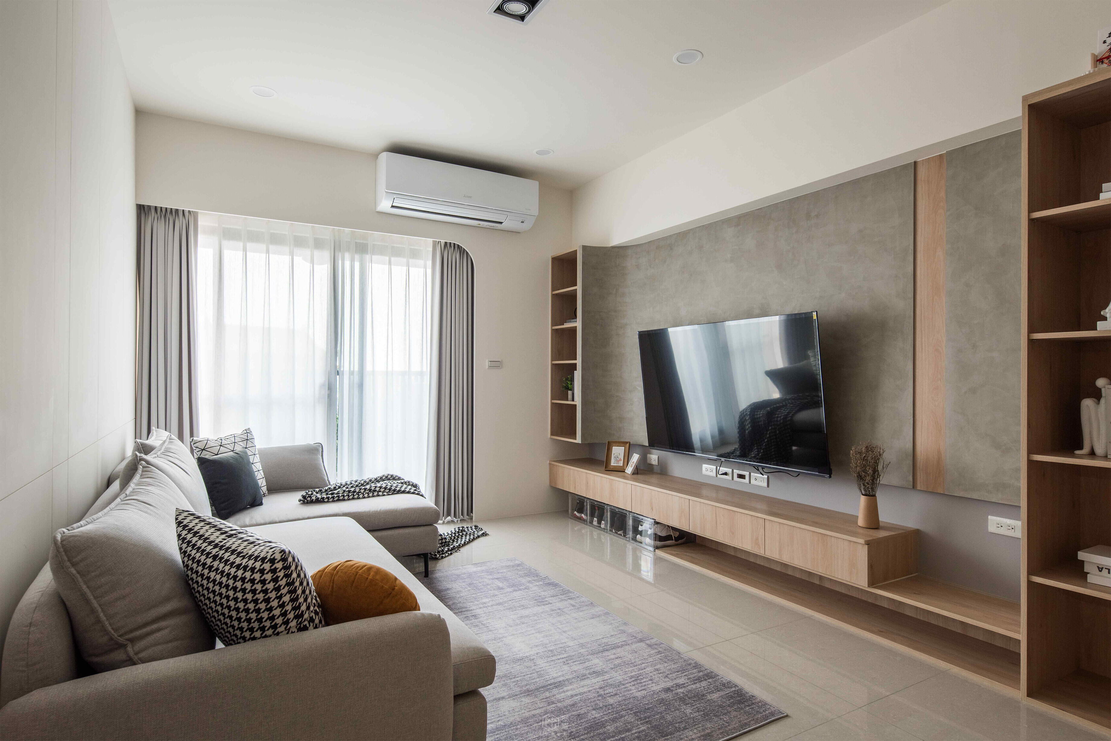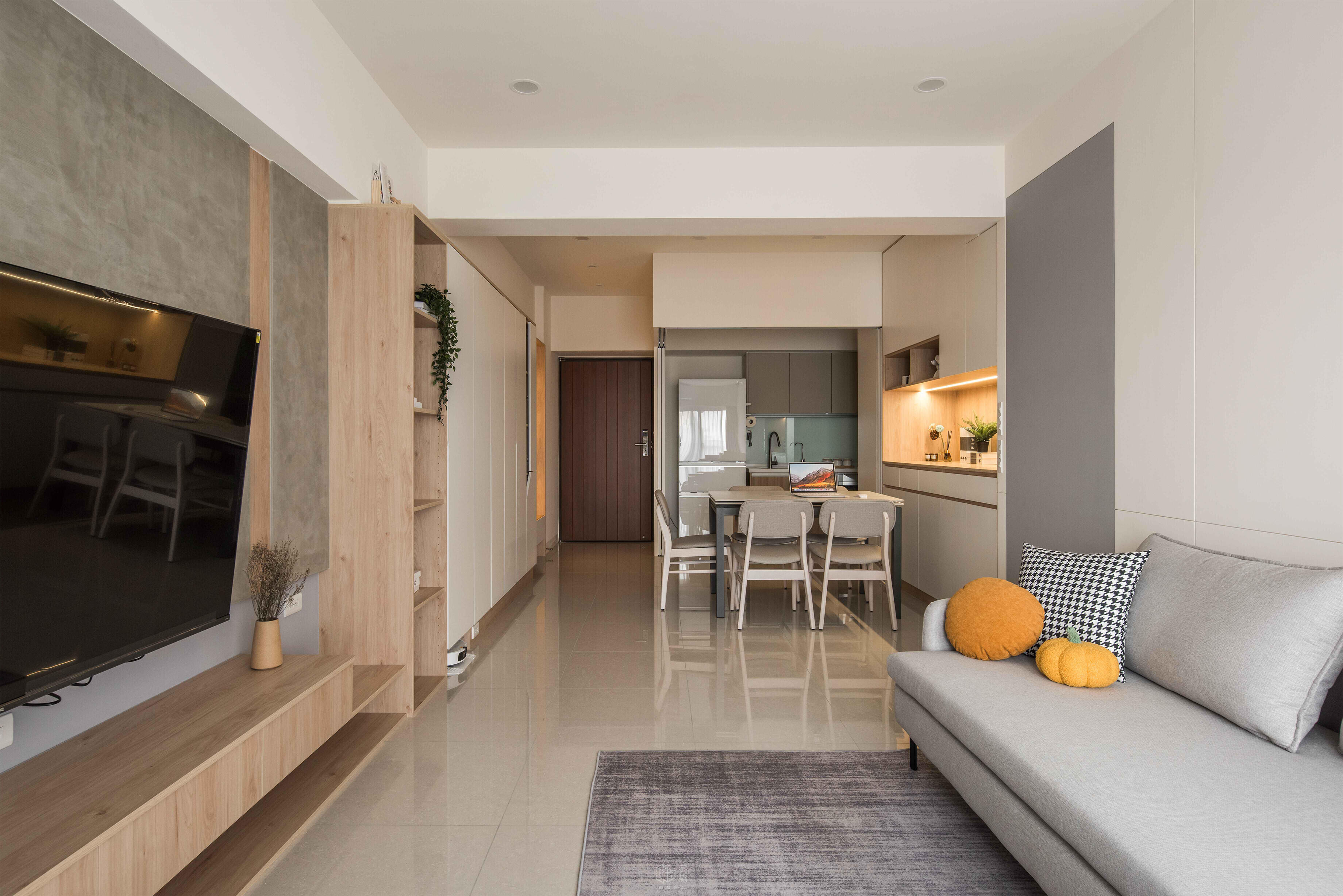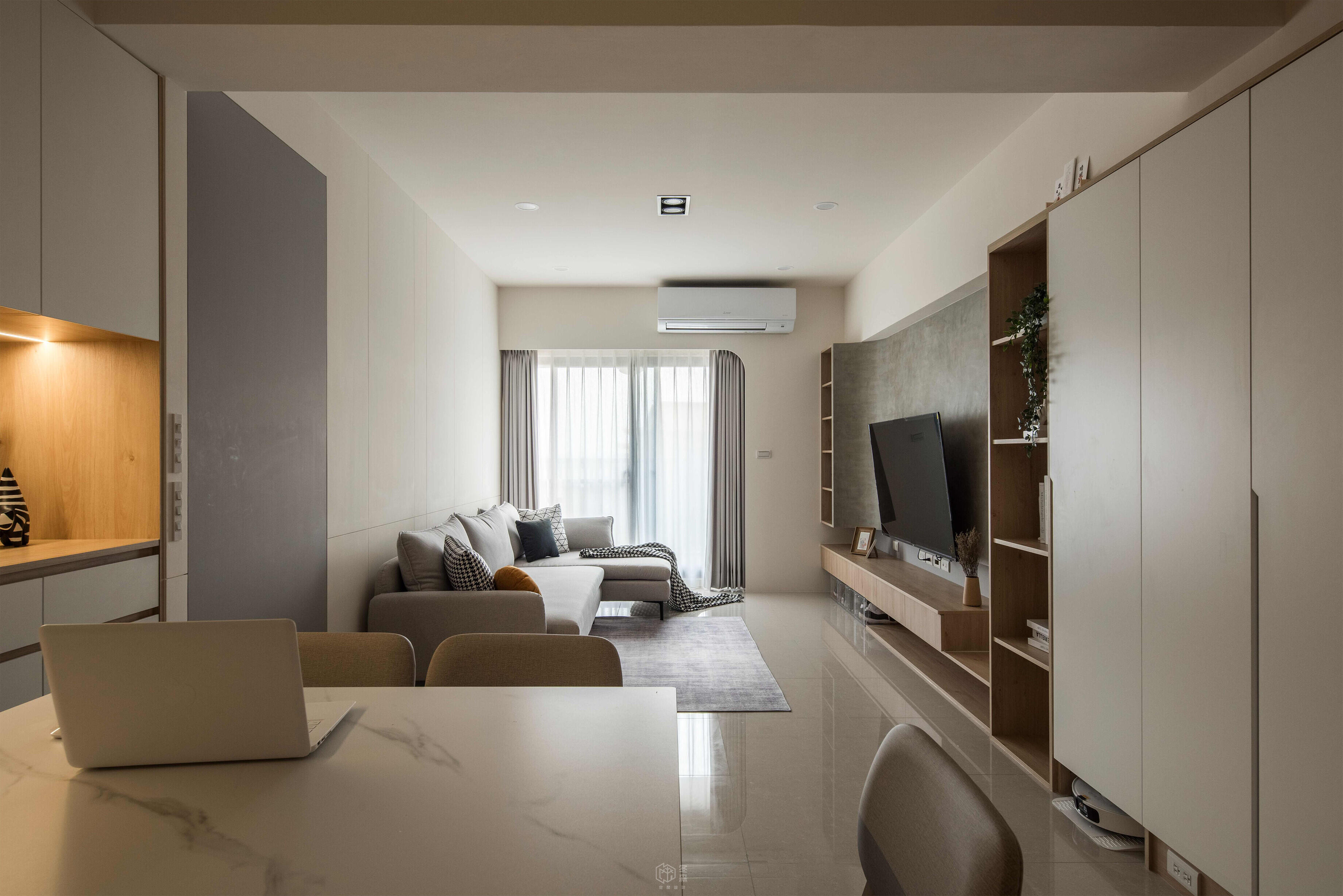 無隔間的客廳 , 使的視覺上創造出明亮的氛圍 , 整體空間感也拉大