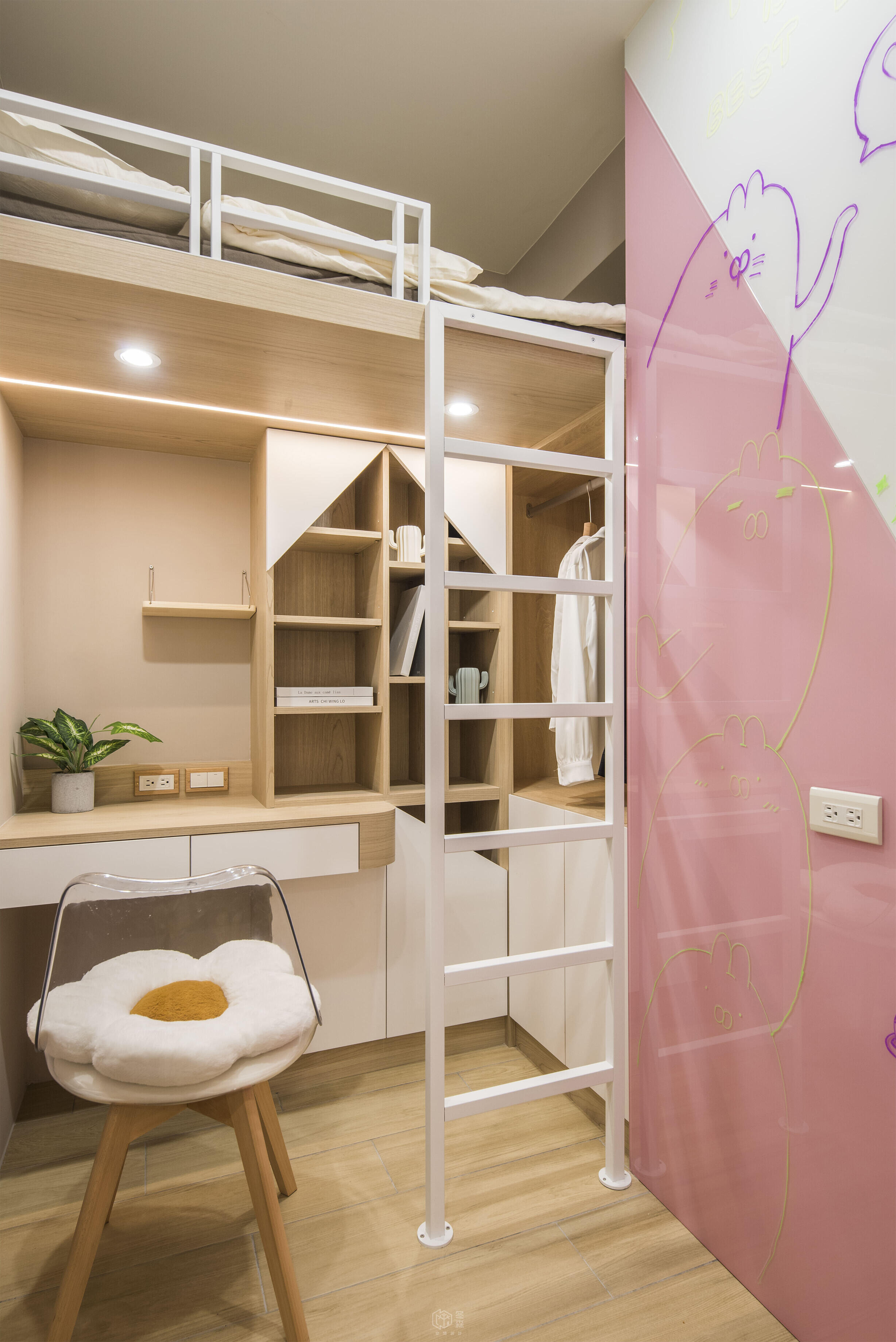 在整個改造過程中,小孩房是最具挑戰性的部分。儘管空間面積有限,設計師依然展現了高超的巧思,將書桌、床、衣櫥和留言板等現代居住所需的基本功能巧妙地佈局在一起。這種設計不僅滿足了小孩的日常需求,還為房間注入了獨特而有趣的元素,營造出一個充滿生機和創意的環境,讓孩子在其中學習和成長。