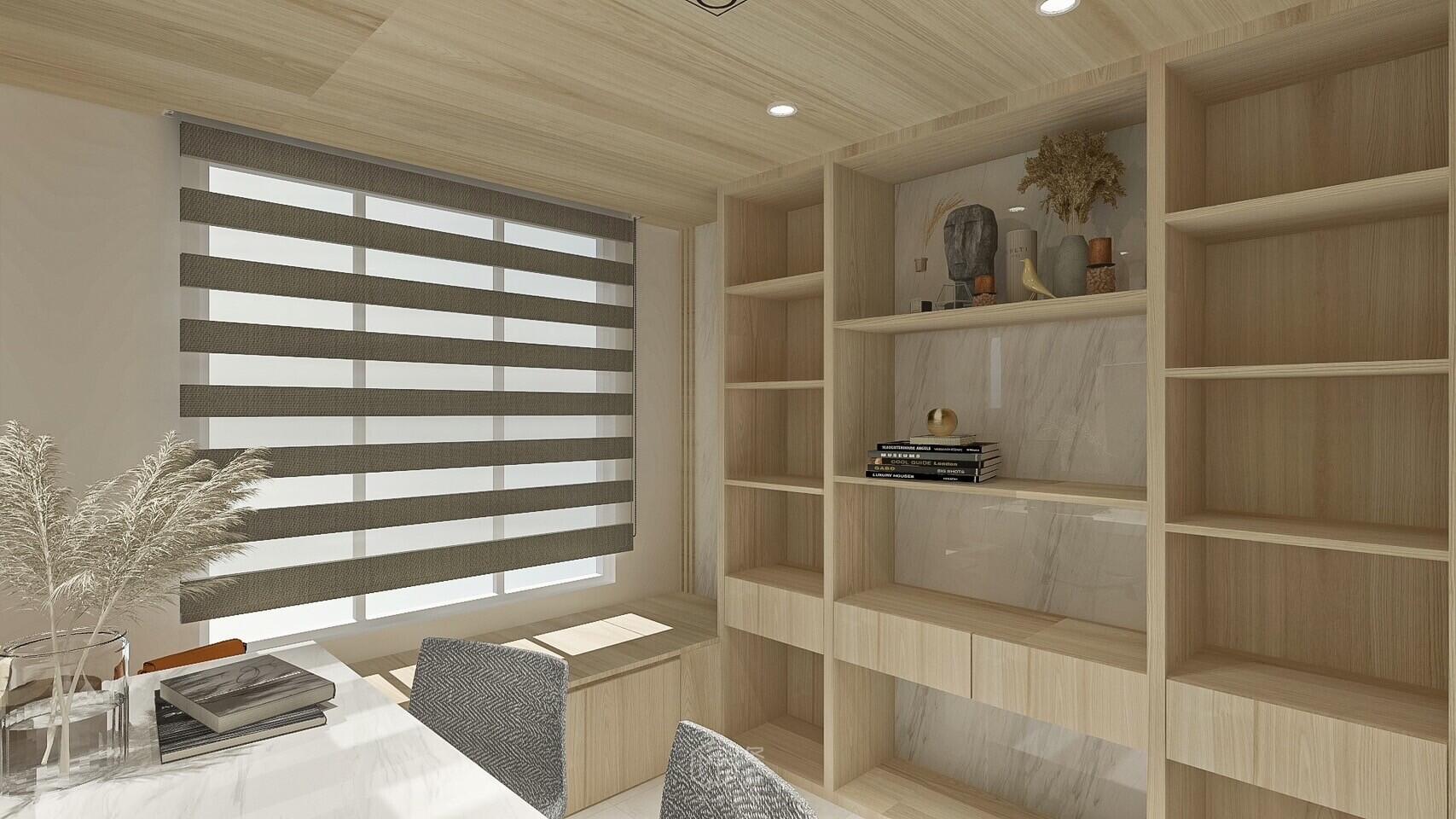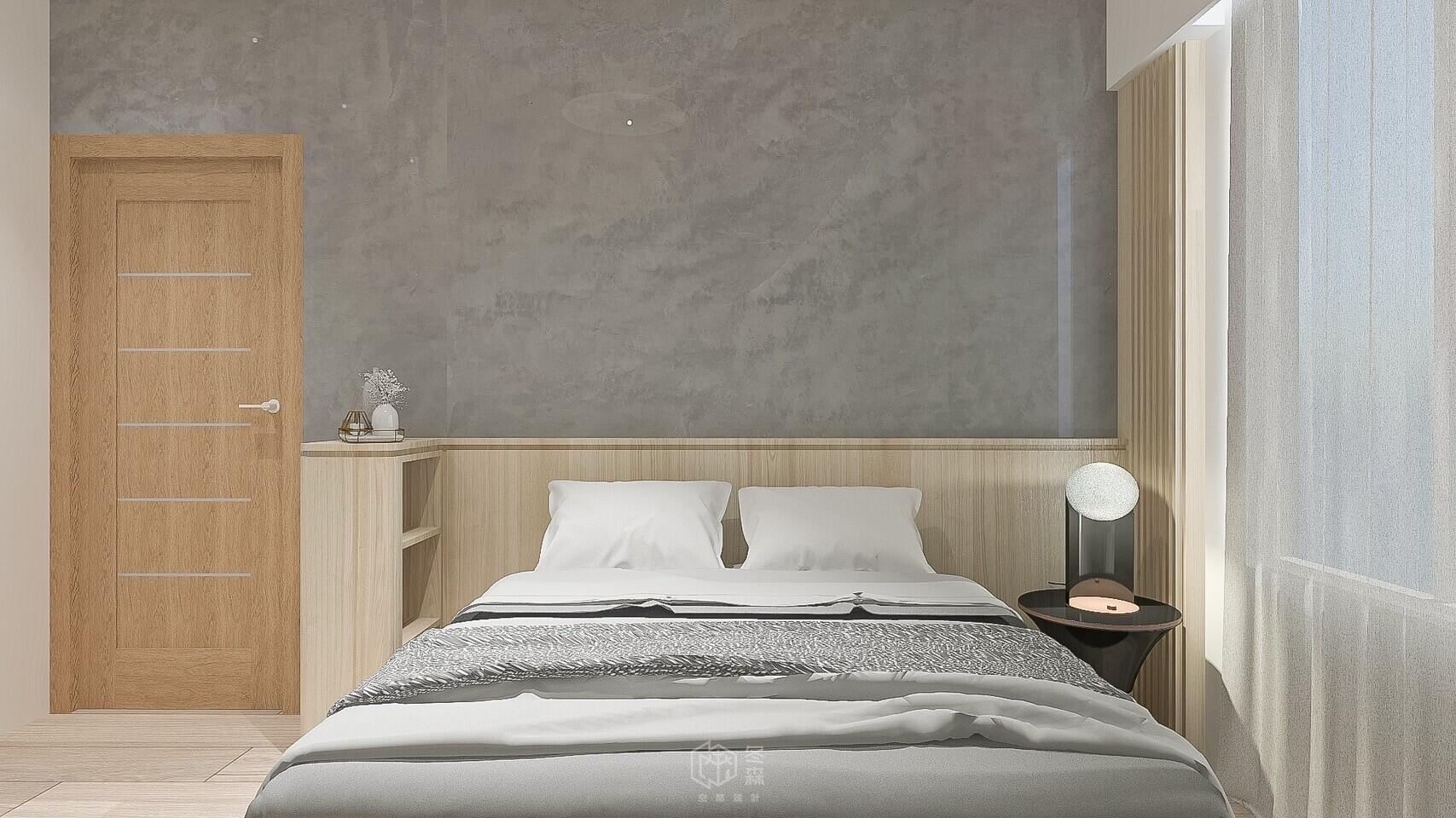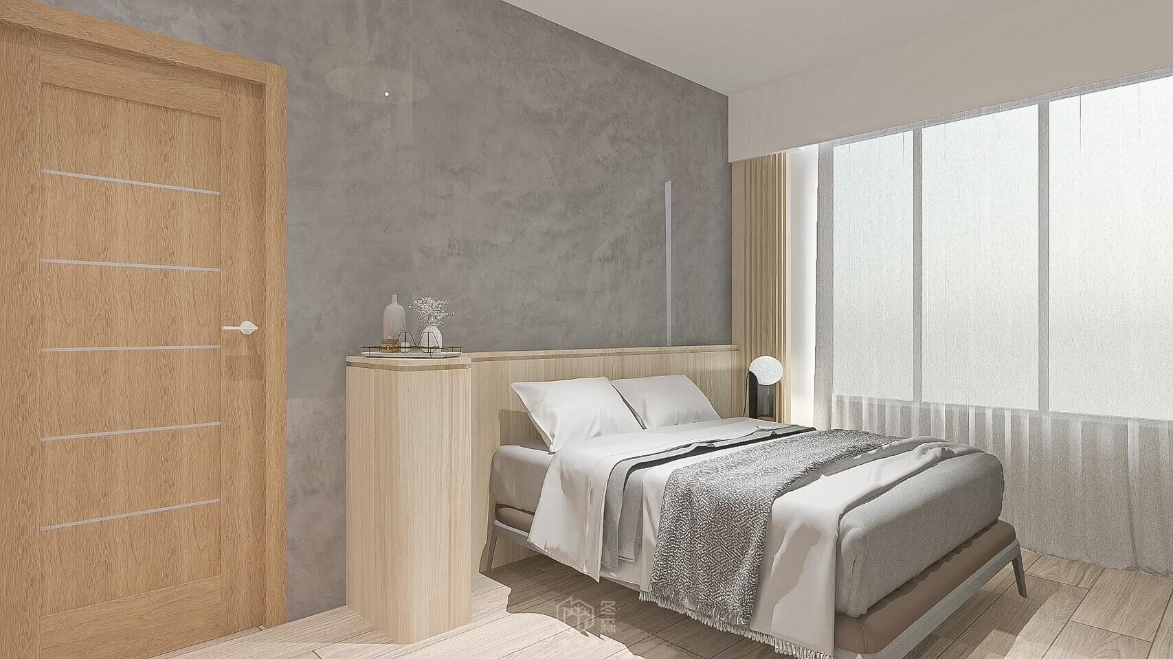 私領域根據每位居者需求量身訂製,主臥室利用純白色與和木質調為基底,交織溫潤柔和的私領域氛圍;沿著壁面置入完善的收納機能,並串連梳妝台與收納平台等機能。次臥空間以綠色調設定,利用簡約手法,巧搭木作櫃體,創造兼具美感與機能的睡眠空間。