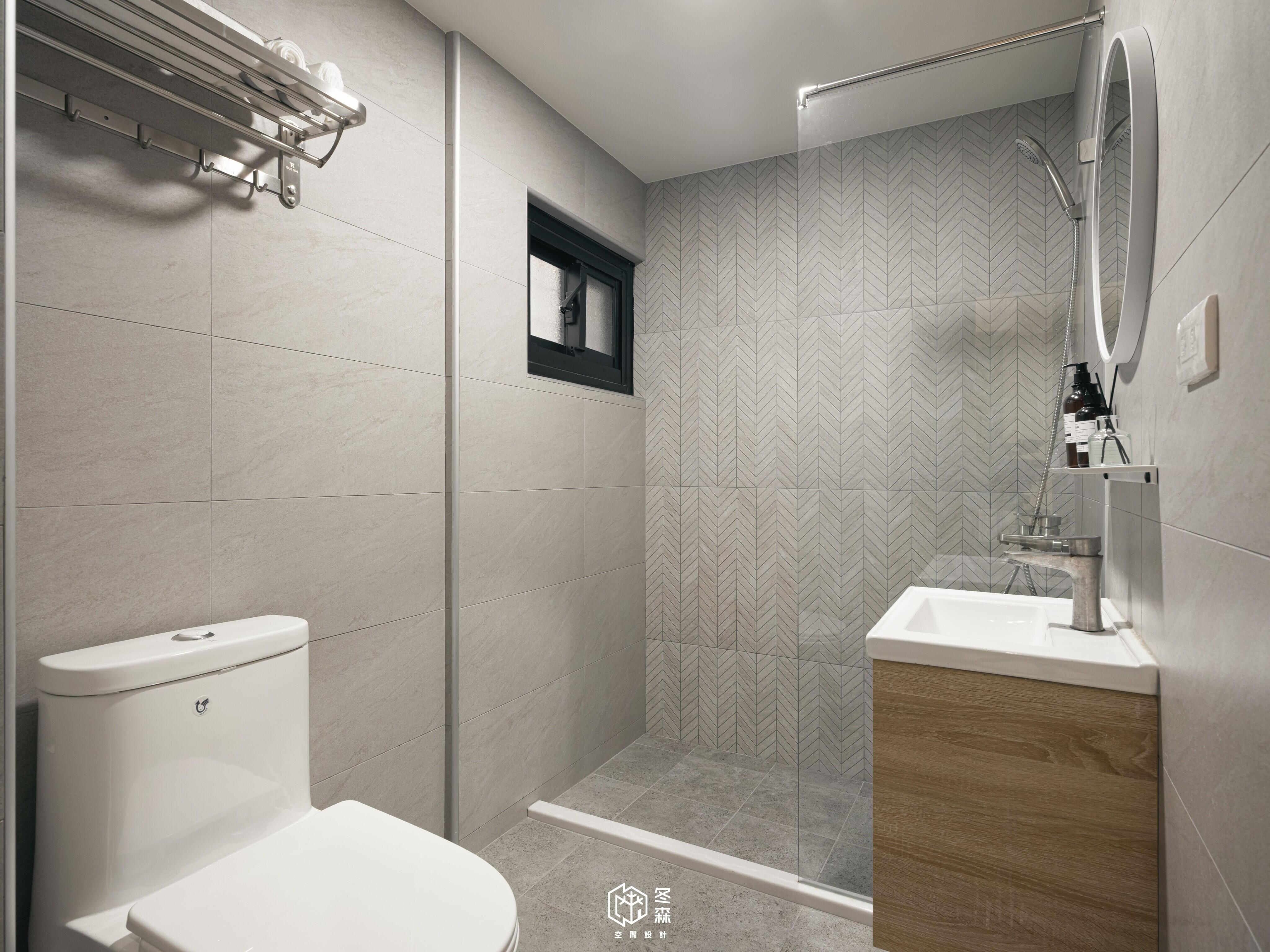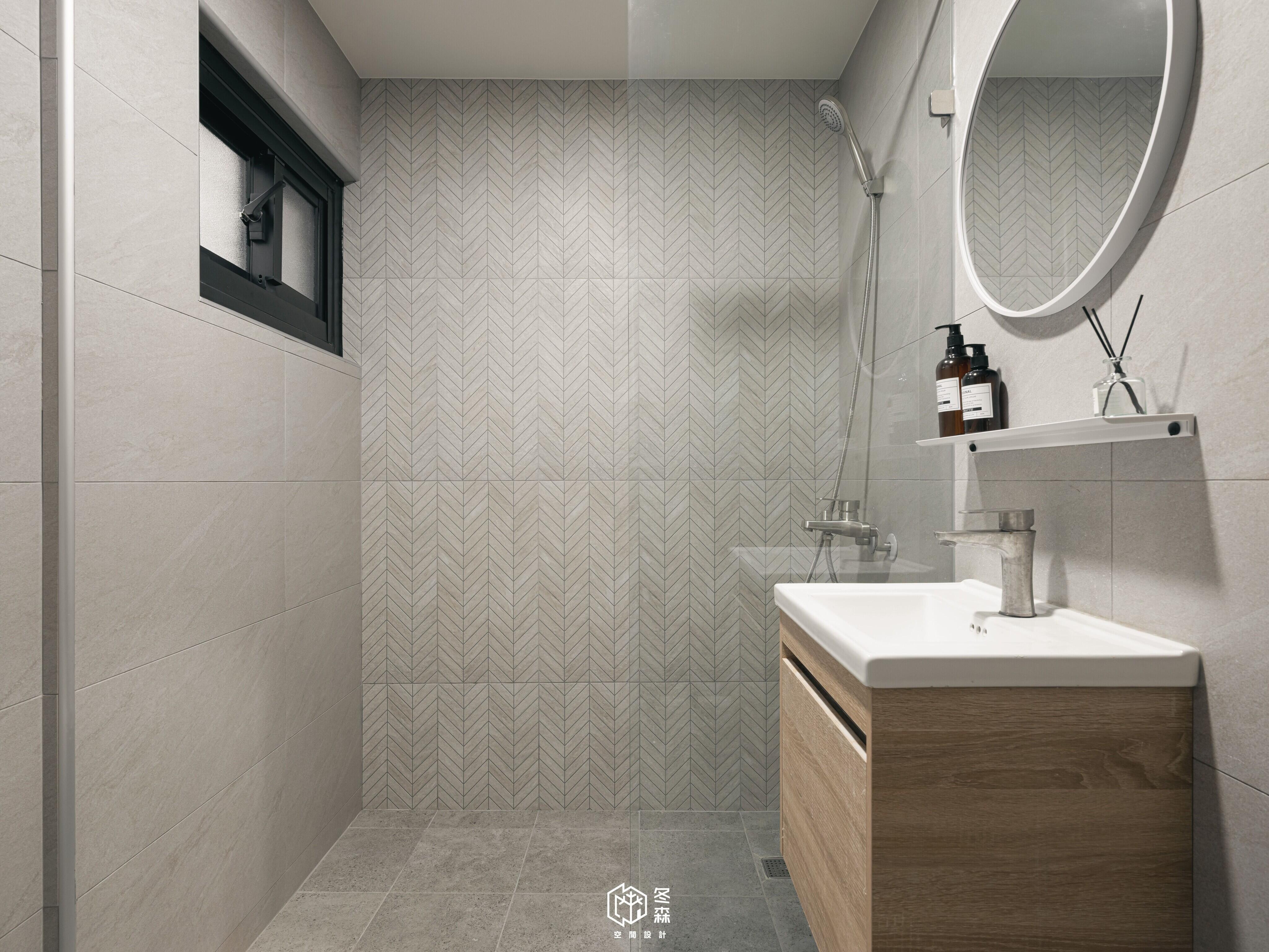 兩間衛浴的牆面與地磚都經過特別挑選,採用灰色調帶有紋路的款式,以「石」為主題,更能搭配我們整間屋子的侘寂風。