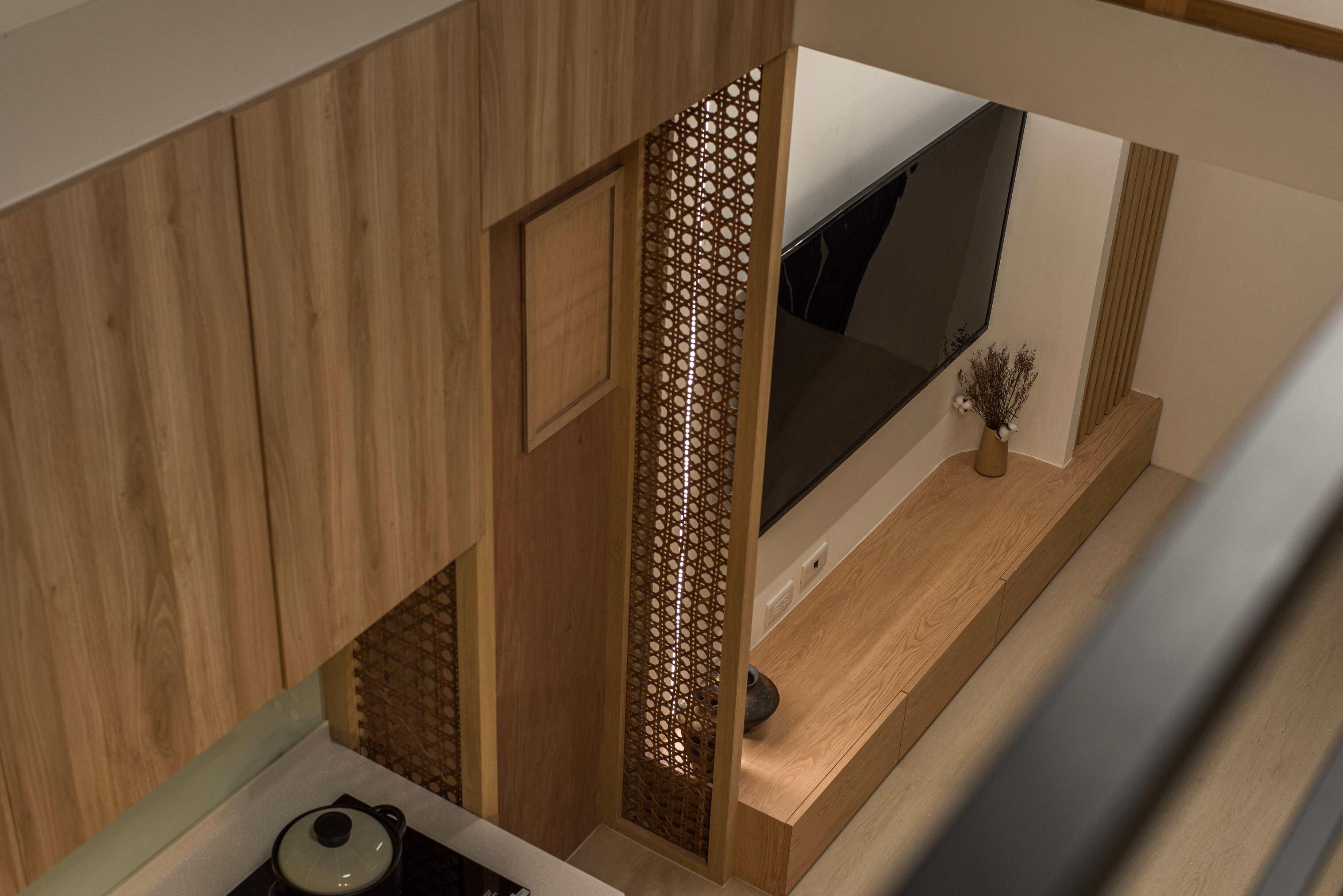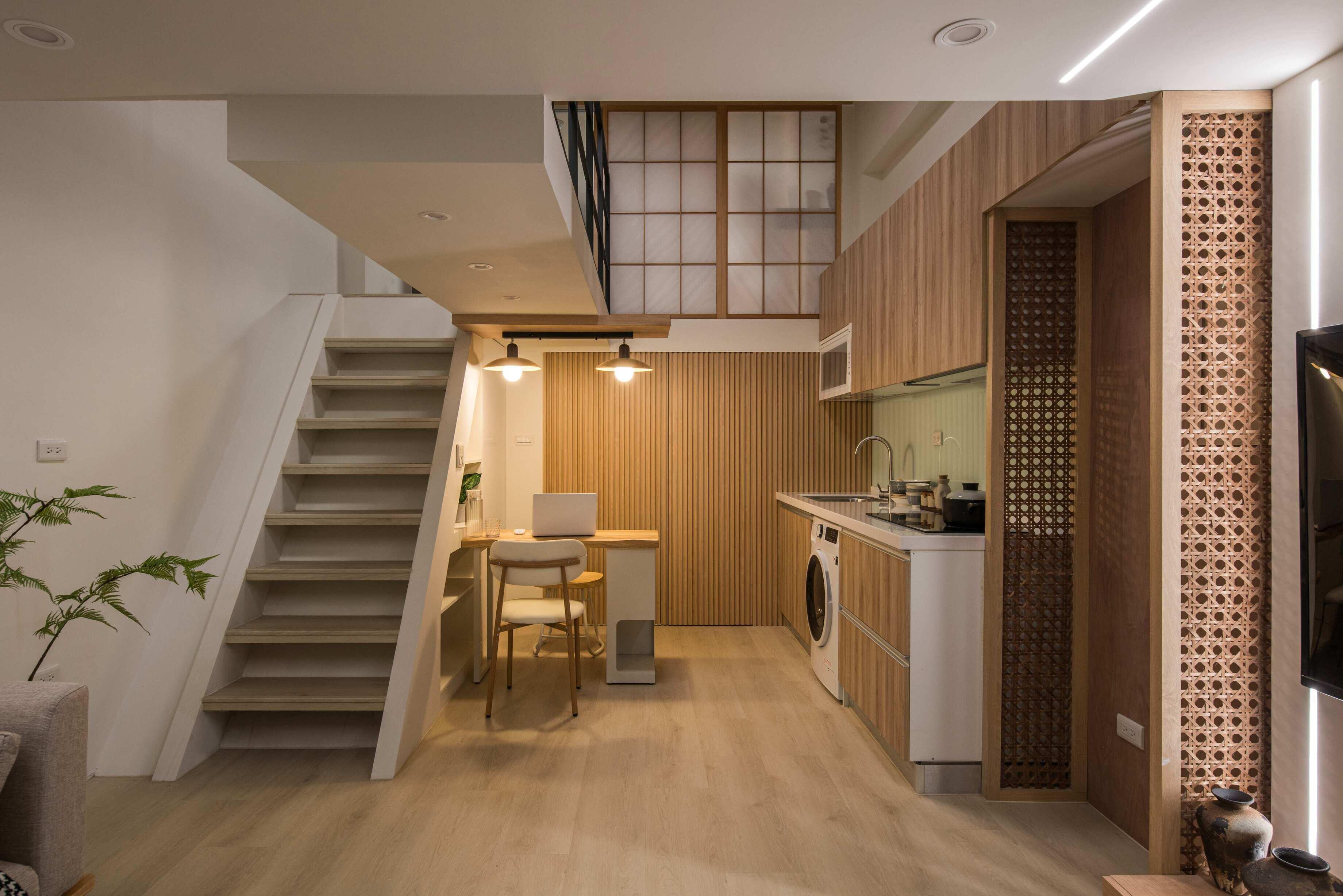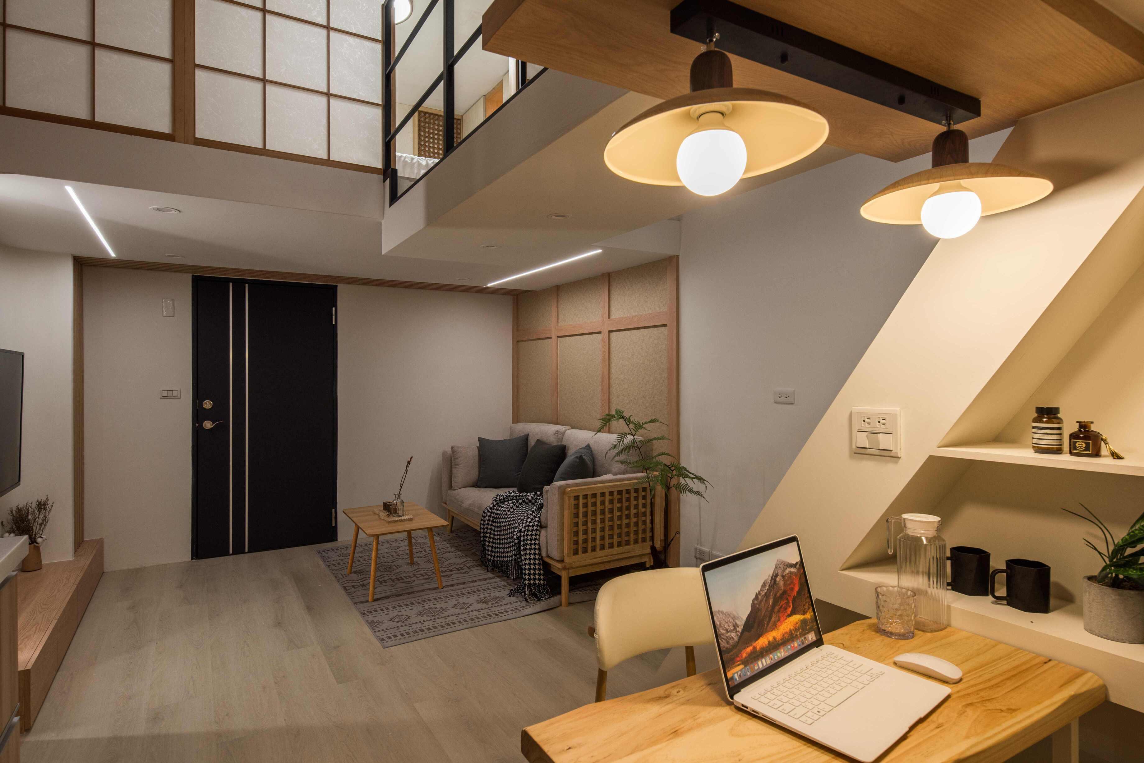 在這間以日式簡約風格為主軸的空間中,我們融入樓中樓設計,以木質構築上下層空間,延續日式的極簡與留白美學。