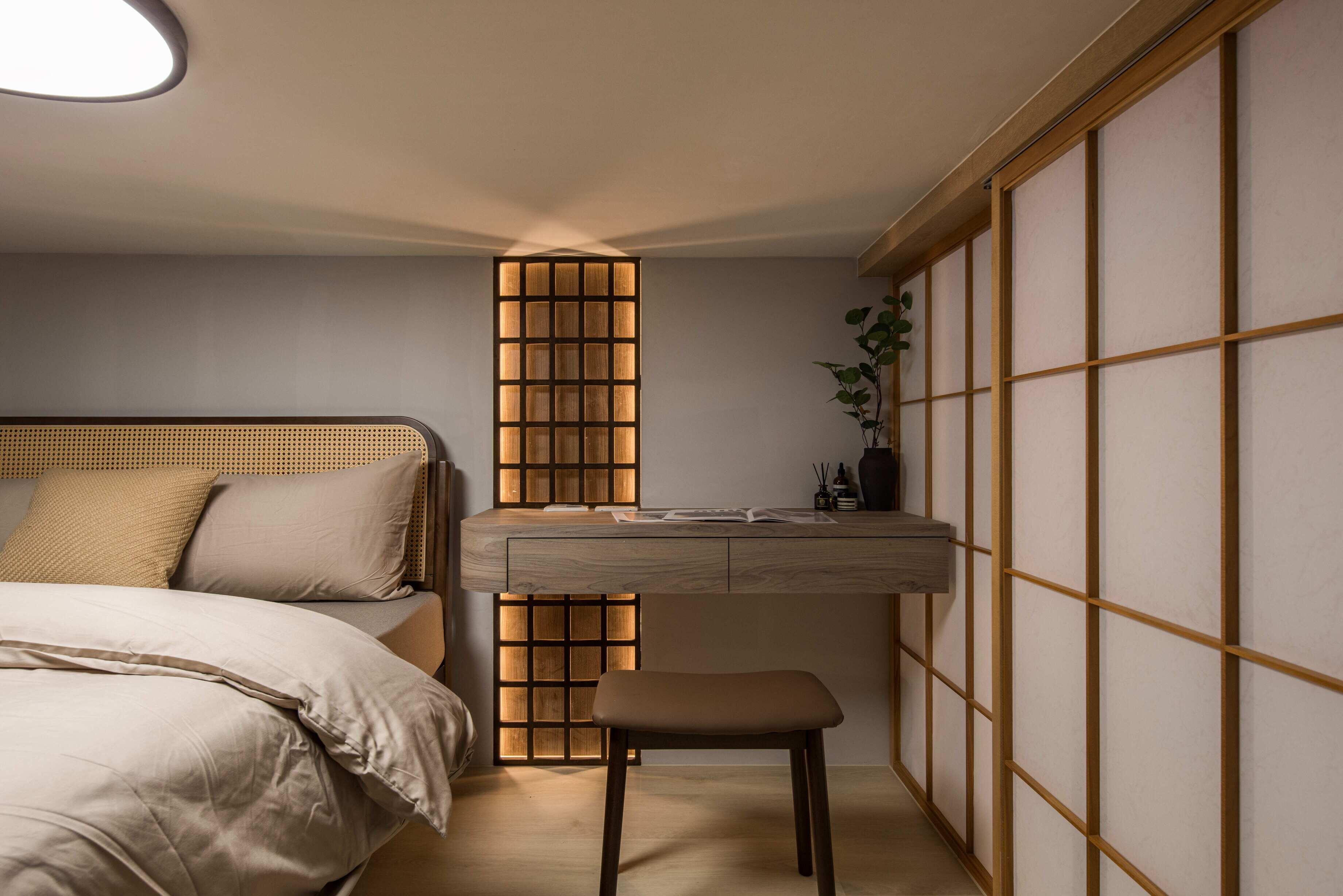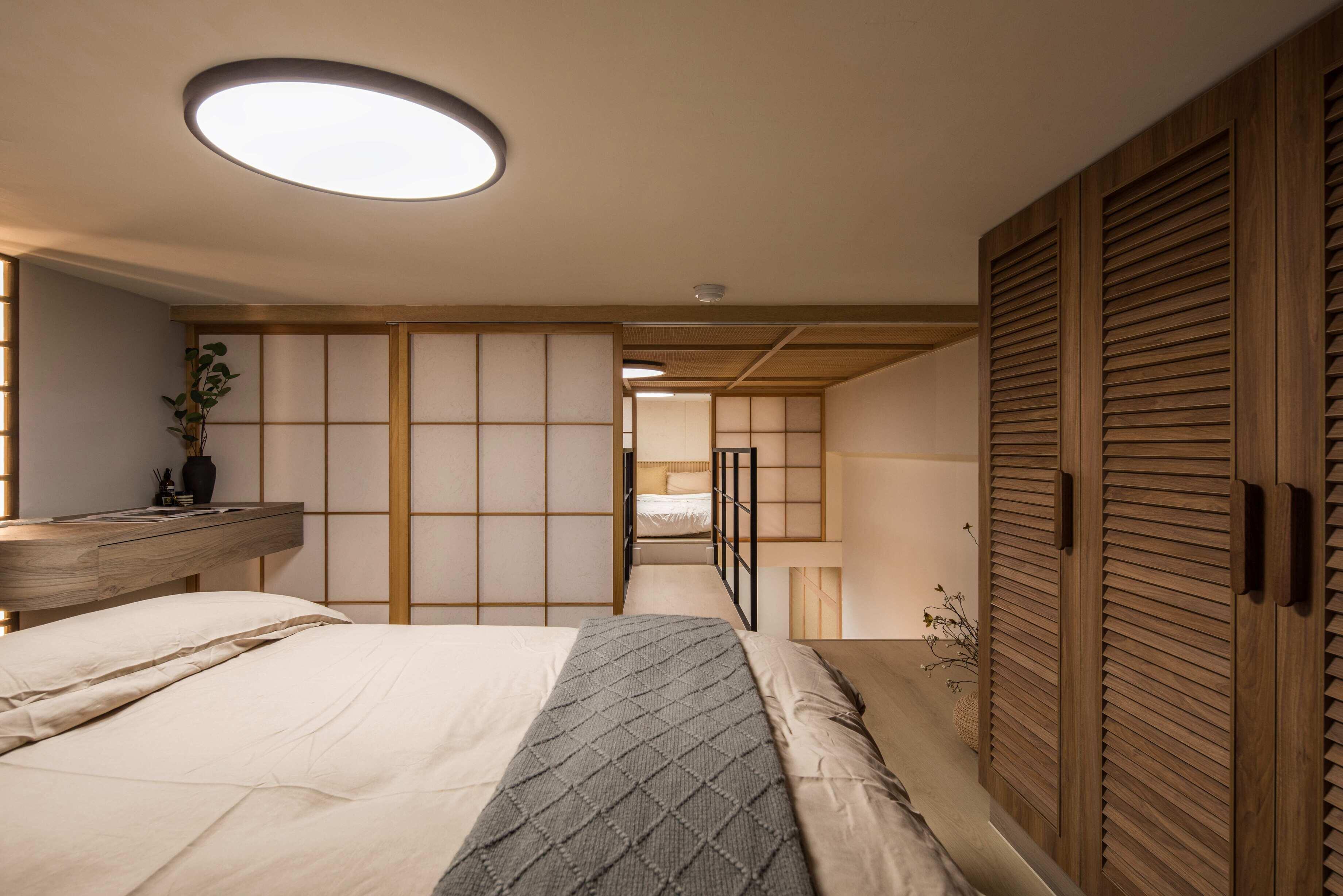 臥室選用紙拉門設計,讓空間多了份日式的柔和,一側藏著一間小茶室,作為閱讀、放空、泡茶的私密角落。每一處細節,每一個元素,皆是對日式美學的延伸與應用。